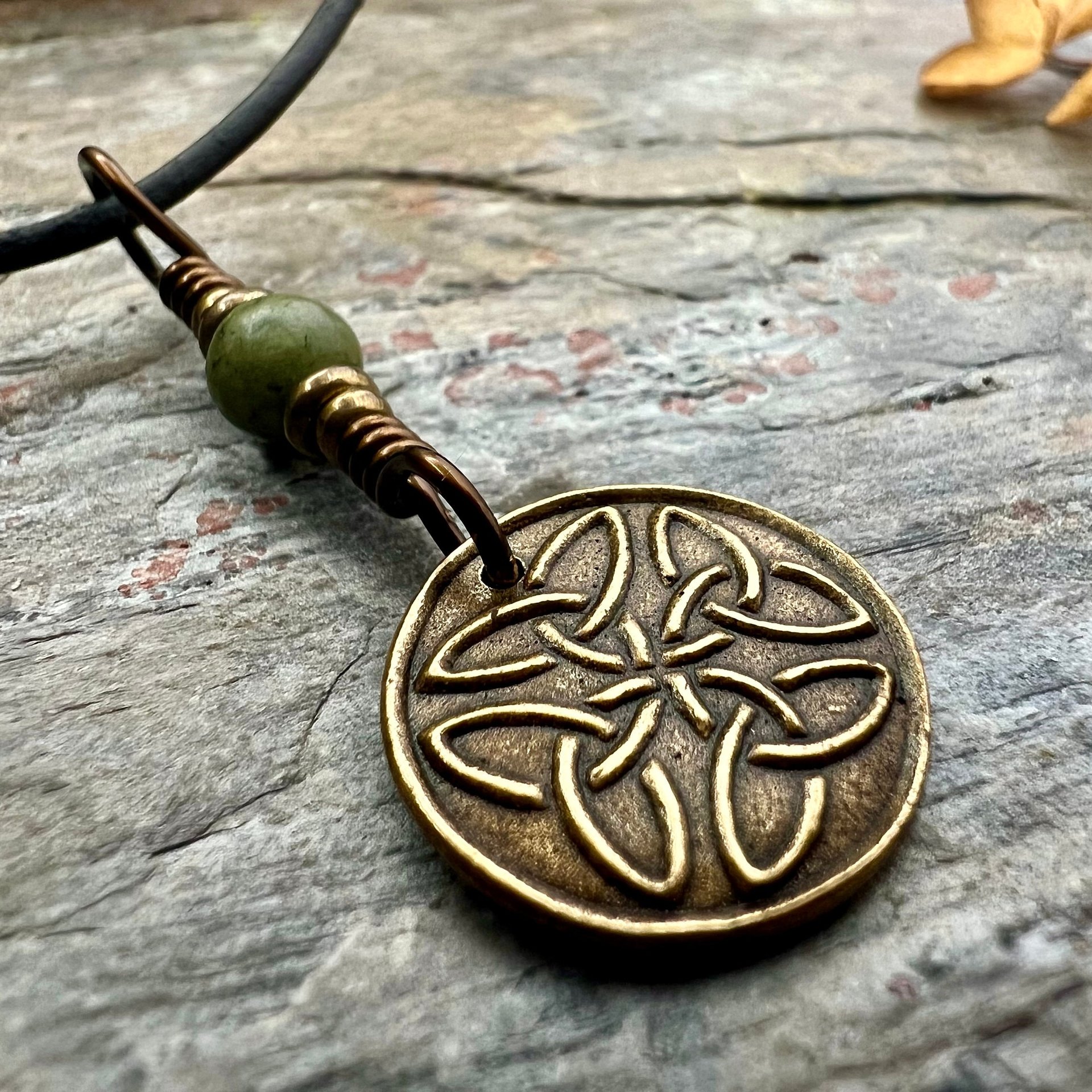 Bronze Trinity Knot, Triquetra, Wax Seal Charm, Connemara Marble, Irish Celtic Jewelry, Pagan, 8th Anniversary, Triple Goddess, Celtic Witch