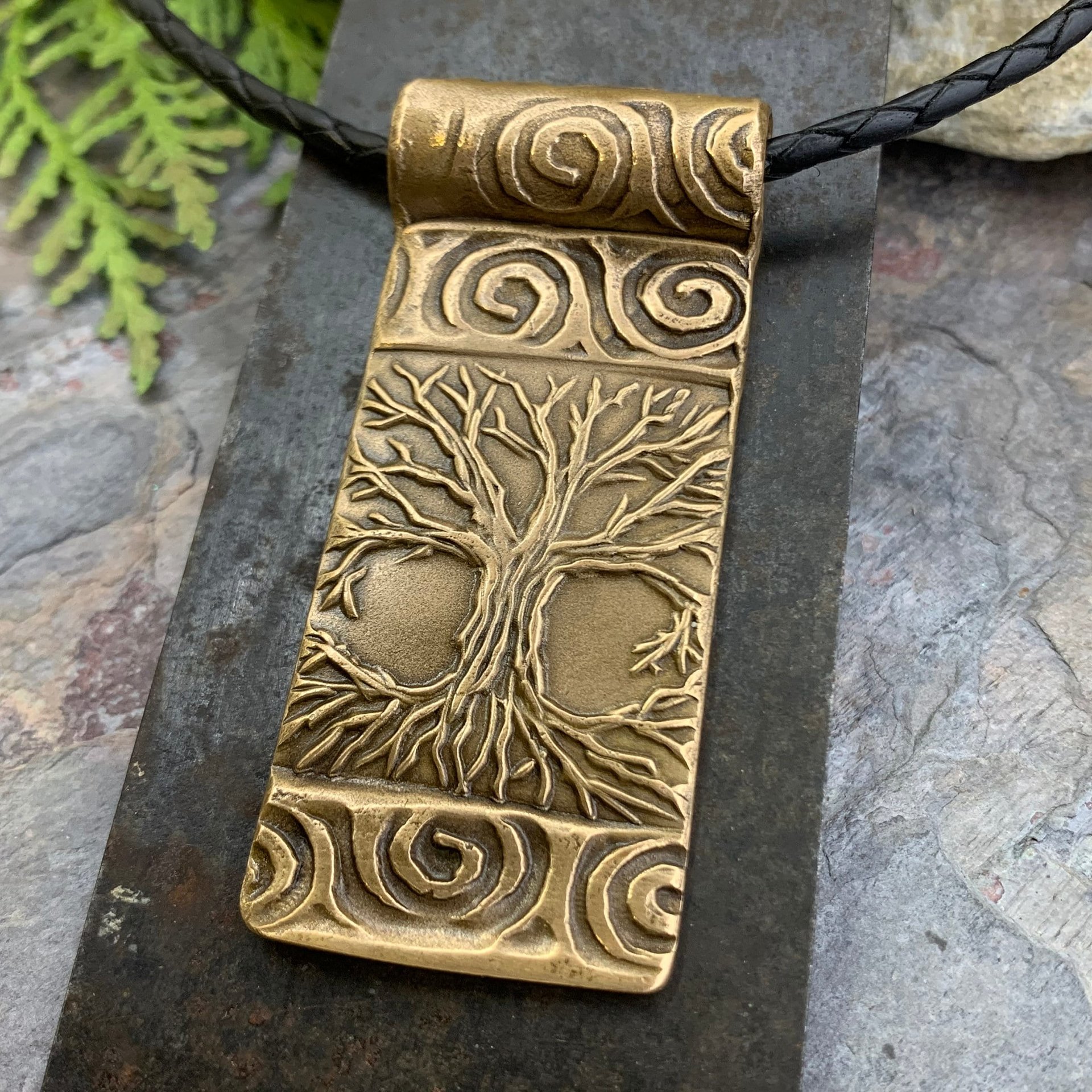 Celtic Tree of Life, Bronze Tree Pendant, Hand Carved, Irish Celtic Spirals, Crann Bethadh, Druid Pagan, Handmade Art, Soul Harbor Jewelry