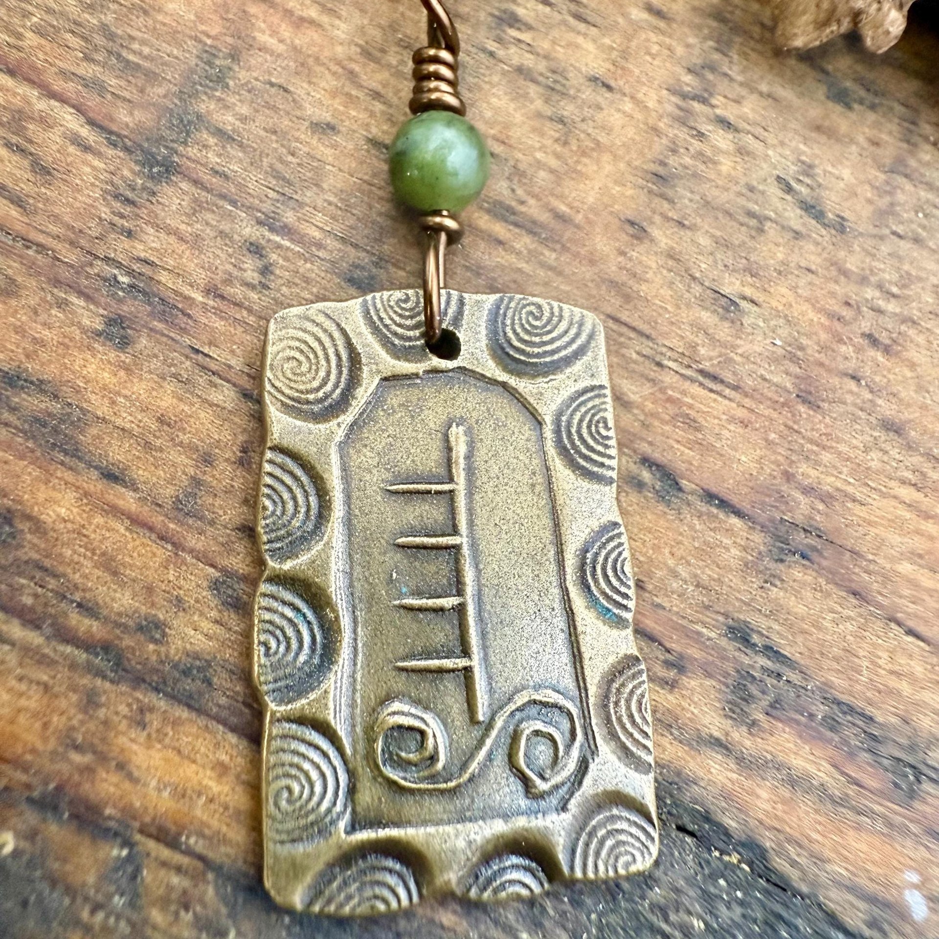 Hazel Tree Ogham Charm, Bronze Pendant, Celtic Tree Astrology, Connemara Marble, Hand Carved, Spirals, Celtic Zodiac, August 5 – September 1