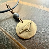 This little Raven charm in bronze was created using a traditional wax seal. This sweet charm is organic, earthy and rustic, adding to the overall ancient aesthetic of this pendant. I've added a bead of Kilkenny Black marble from Ireland to complement this charm. This is a thinner, lighter, disc charm, perfect for everyday wear.