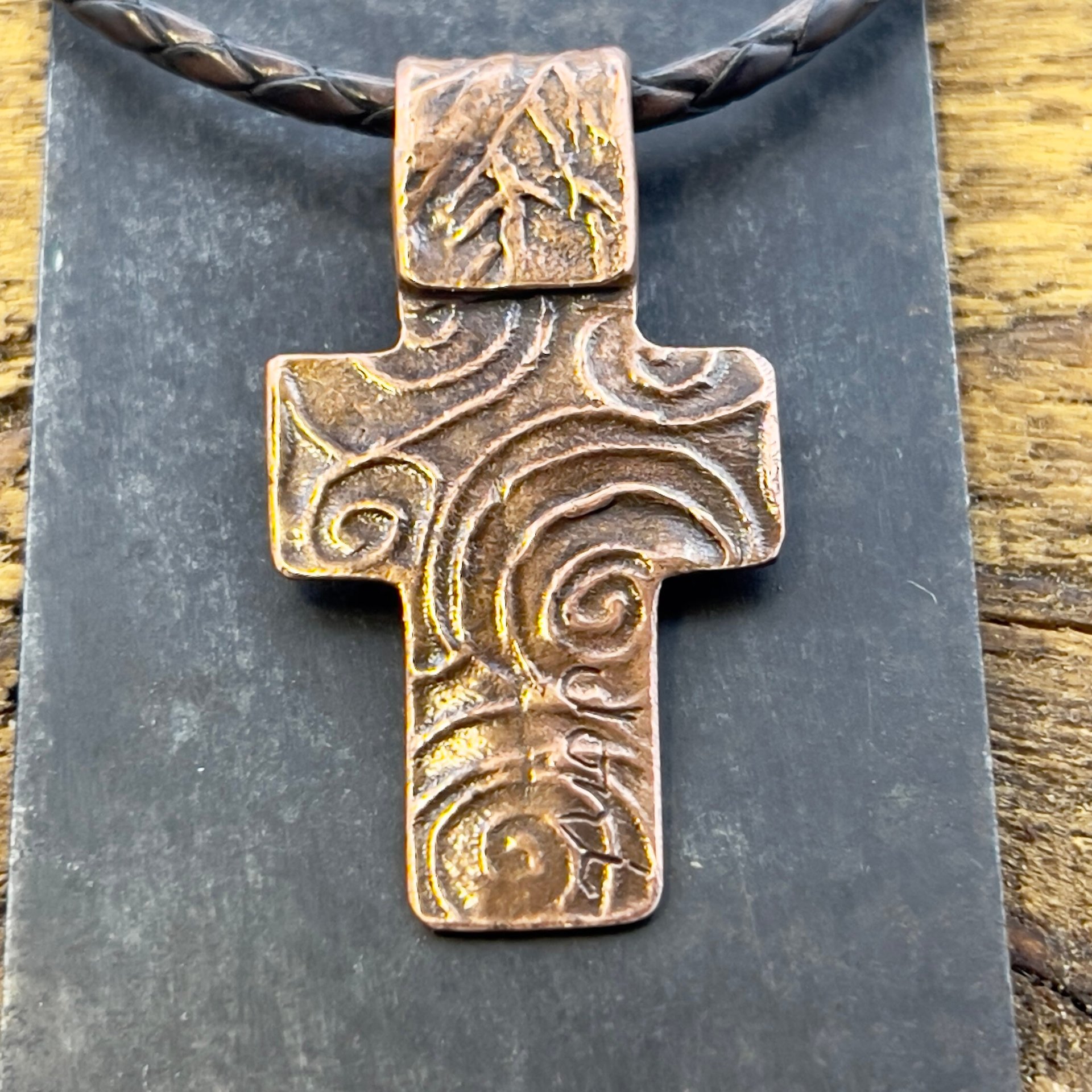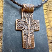 This is my hand-carved Tree of Life Cross pendant in copper. This is a very organic and earthy Tree Cross, perfect for men and women.